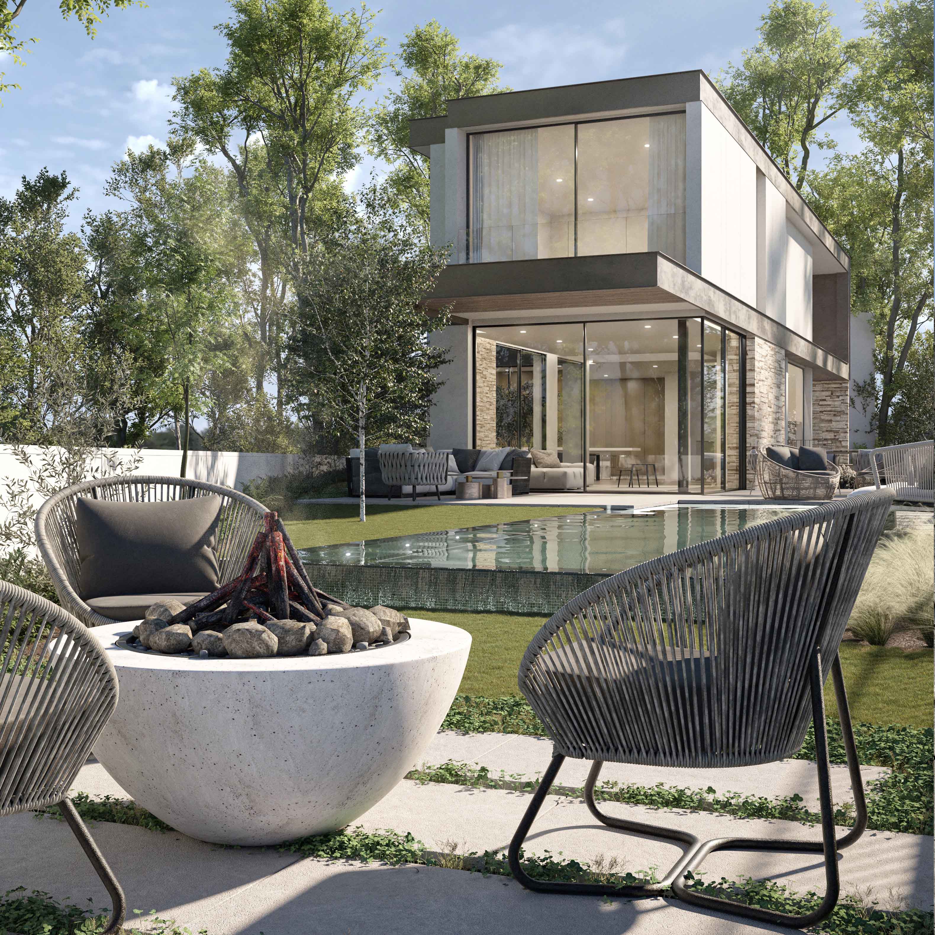 משחקי פתיחות וסגירות מאפשרים פרטיות יחד עם מבטים פתוחים לעומק המגרש.